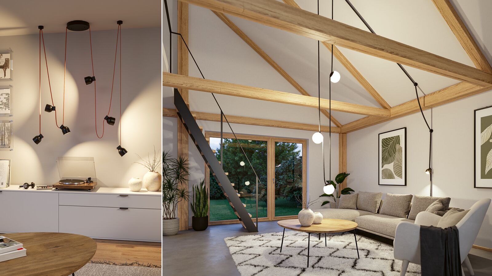 Ob als Akzentbeleuchtung oder als zentrales Designelement – Pendel-Leuchten, Lichtkugeln, Spots oder Light Bars können frei entlang der Gurte positioniert werden – ganz nach deinen persönlichen Vorstellungen.