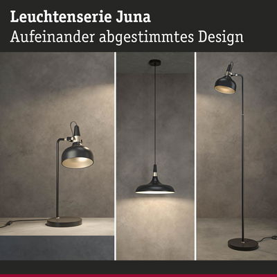 Mit ihrer zeitlosen und zugleich modernen Form- und Designsprache passt die Leuchtenserie Juna in unterschiedlichste Einrichtungsstile und setzt attraktive Lichtakzente im Wohnbereich. Nach Belieben lassen sich die aufeinander abgestimmten Tisch- Steh- und Pendelleuchten der Serie harmonisch miteinander kombinieren. Die schwarz matte Pendelleuchte mit ästhetischen Farbakzenten in Champagnergold ist vielseitig einsetzbar und eignet sich ideal für die Beleuchtung am Esstisch oder über dem Küchentresen. Ihre hochwertige Verarbeitung sorgt nicht nur für eine ansprechende Optik, sondern auch für eine lange Lebensdauer. Als Leuchtmittelempfehlung eignen sich insbesondere dekorative Kopfspiegellampen mit einem E27-Sockel, die für ein blendfreies Licht sorgen.
