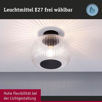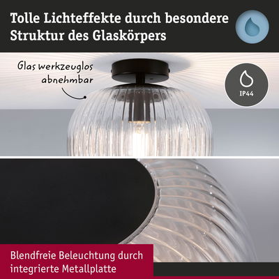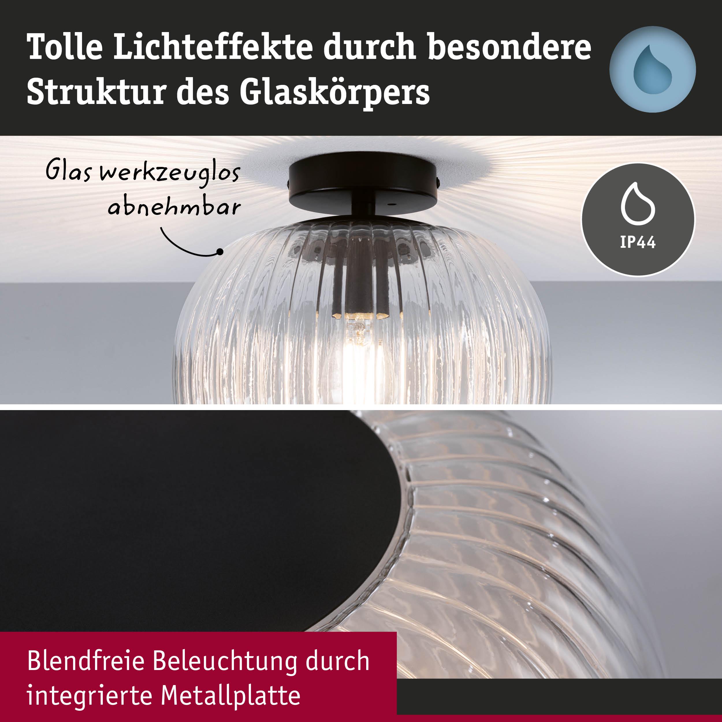 LED Deckenleuchte Ruya IP44 E27 230V max. 60W dimmbar Glas/Schwarz matt