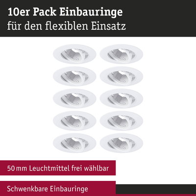 Einbauleuchte 10er-Set schwenkbar rund 90mm 30° GU10 max. 10x10W 230V dimmbar Weiß