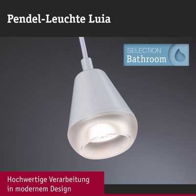 Die Pendelleuchte Luia in Satin/Weiß matt vereint schlichtes, elegantes Design mit einer technisch anmutenden Ästhetik und eignet sich besonders für kleinere Räume. Dank ihrer hochwertigen Verarbeitung und dem ansprechenden Materialmix aus Kunststoff und Metall überzeugt sie durch eine moderne Optik. Das Pendel ist sowohl im privaten als auch im gewerblichen Bereich einsetzbar. Im Badezimmer oder Gäste-WC sorgt die IP44-Zertifizierung dafür, dass sie auch in feuchten Umgebungen problemlos verwendet werden kann. Darüber hinaus eignet sich die Leuchte perfekt für den Einsatz über Esstischen oder Theken, wo sie mit ihrem reduzierten Design eine dezente Beleuchtung bietet. Die Länge des Pendels ist verstellbar (0,7 - 1,50 m), sodass sich die Leuchte optimal an die Raumhöhe anpassen lässt. Mit ihrer zurückhaltenden Optik fügt sie sich nahtlos in unterschiedliche Einrichtungsstile ein und erweist sich als echtes Allround-Talent.