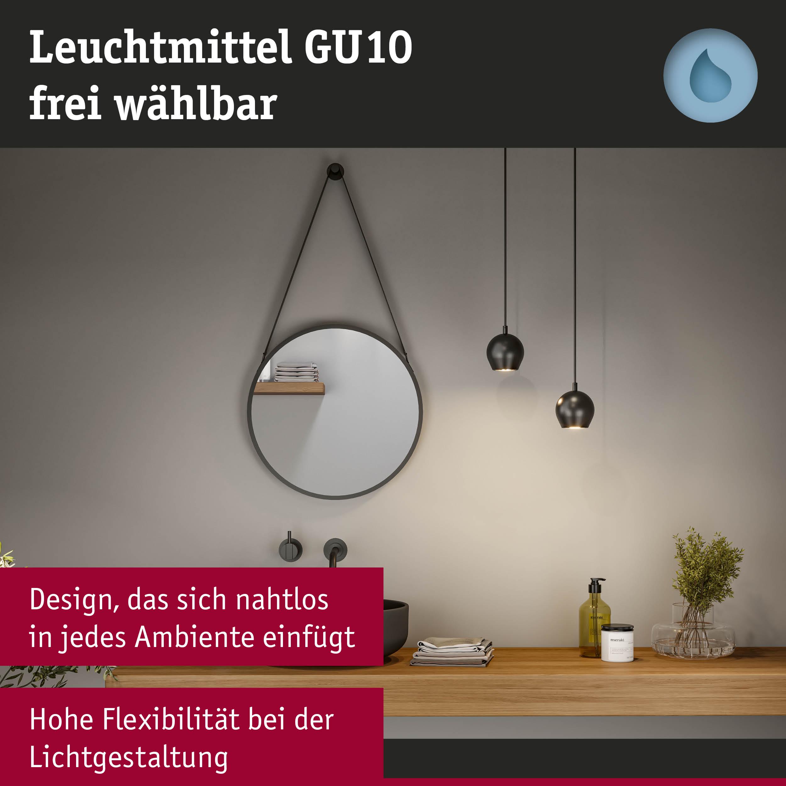 Die Pendelleuchte Shima in Schwarz matt ist ein wahres Highlight in jedem Raum. Mit ihrem schlichten, eleganten und technisch anmutenden Design fügt sie sich nahtlos in jede Umgebung ein. Das hochwertige Metall sorgt für eine ansprechende Optik. Die Pendelleuchte ist universell im privaten als auch im gewerblichen Bereich einsetzbar. Durch ihre kleine Größe eignet sie sich auch perfekt für eine Mehrfach-Platzierung im Bereich Tresen. Dank der IP44 Schutzart ist sie sogar in feuchten Umgebungen, wie zum Beispiel im Bad, einsetzbar. Die Länge des Pendels ist verstellbar (0,7 - 1,50 m), sodass sich die Leuchte optimal an die Raumhöhe anpassen lässt. Die wechselbaren Leuchtmittel mit GU10 Fassung machen diese Pendelleuchte zu einem wahren Allrounder.
