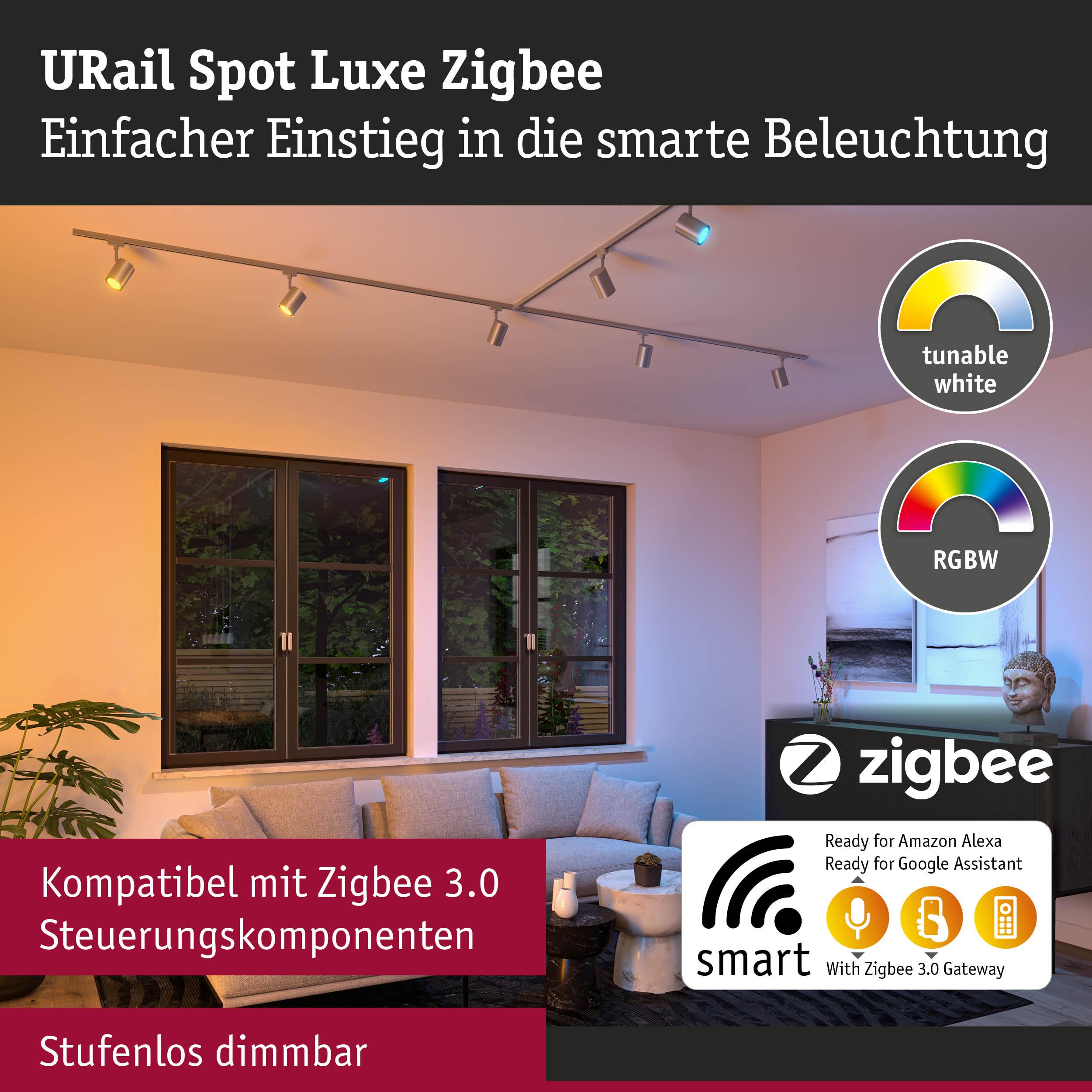 URail Schienenspot Smart Home Zigbee 3.0 Luxe GU10 350lm 4,8W RGBW+ dimmbar 230V Chrom matt