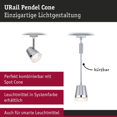 URail Pendel Cone GU10 max. 10W dimmbar 230V Chrom matt
