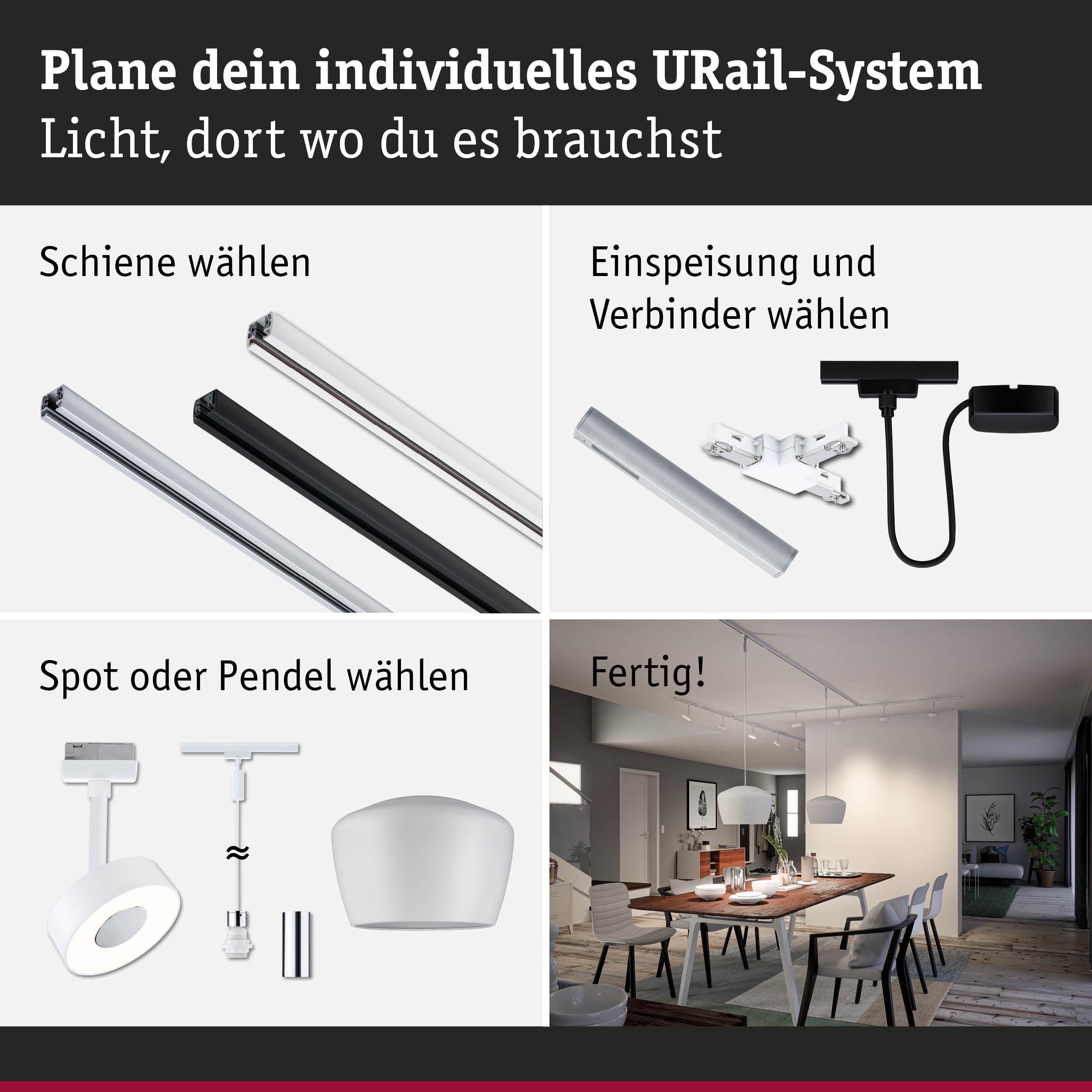 Diese 230 Volt Mitteleinspeisung in Signalweiß mit integriertem Zigbee 3.0-Steuergerät schaltet oder dimmt das gesamte URail System. Die Einspeisung wird direkt über den Stromanschluss angebracht. Durch ihr filigranes Design integriert sie sich perfekt in die Optik der Schiene. Sie ist eine von zahlreichen Systemteilen aus der URail Serie. Zusammen mit weiteren Komponenten lässt sich ein persönliches 230 Volt URail Schienensystem gestalten. HINWEIS: Dieser Artikel ist nicht mit allen festverbauten LEDs und LED-Leuchtmitteln kompatibel und funktioniert nur in Verbindung mit stufenlos dimmbaren Leuchten. Die Dimmer-Kompatibilität kann aus den technischen Daten der Leuchten/Leuchtmittel entnommen werden.