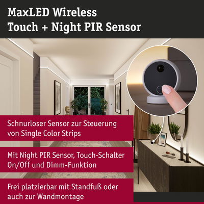 Die hochwertigen Wireless Sensoren zur Steuerung der MaxLED Strips bieten die perfekte Kombination aus Qualität, Design und Funktionalität. Mit dem ansprechenden schwarz, weißem Design und der kabellosen Konstruktion, fügen sich die Wireless Sensoren harmonisch in jedes Wohnkonzept ein. Dank der klebbaren Wandhalterung kann der Sender mühelos an der Wand angebracht und je nach Wunsch in der Magnethalterung positioniert werden. Für die richtige Lichtstimmung sorgt der eingebaute Dimmer, während der Bewegungsmelder maximalen Komfort und Sicherheit verschafft. Inkl. Dämmerungssensor, schaltet erst bei Dämmerung ein. Die Wireless Sensoren überzeugen außerdem mit dem kinderleichten Pairing über den separaten „Pairing Button“. Dank der effizienten Technik hält eine Batterieladung von 100 % ein ganzes Jahr, während die Lebensdauer 5000 Trigger beträgt.