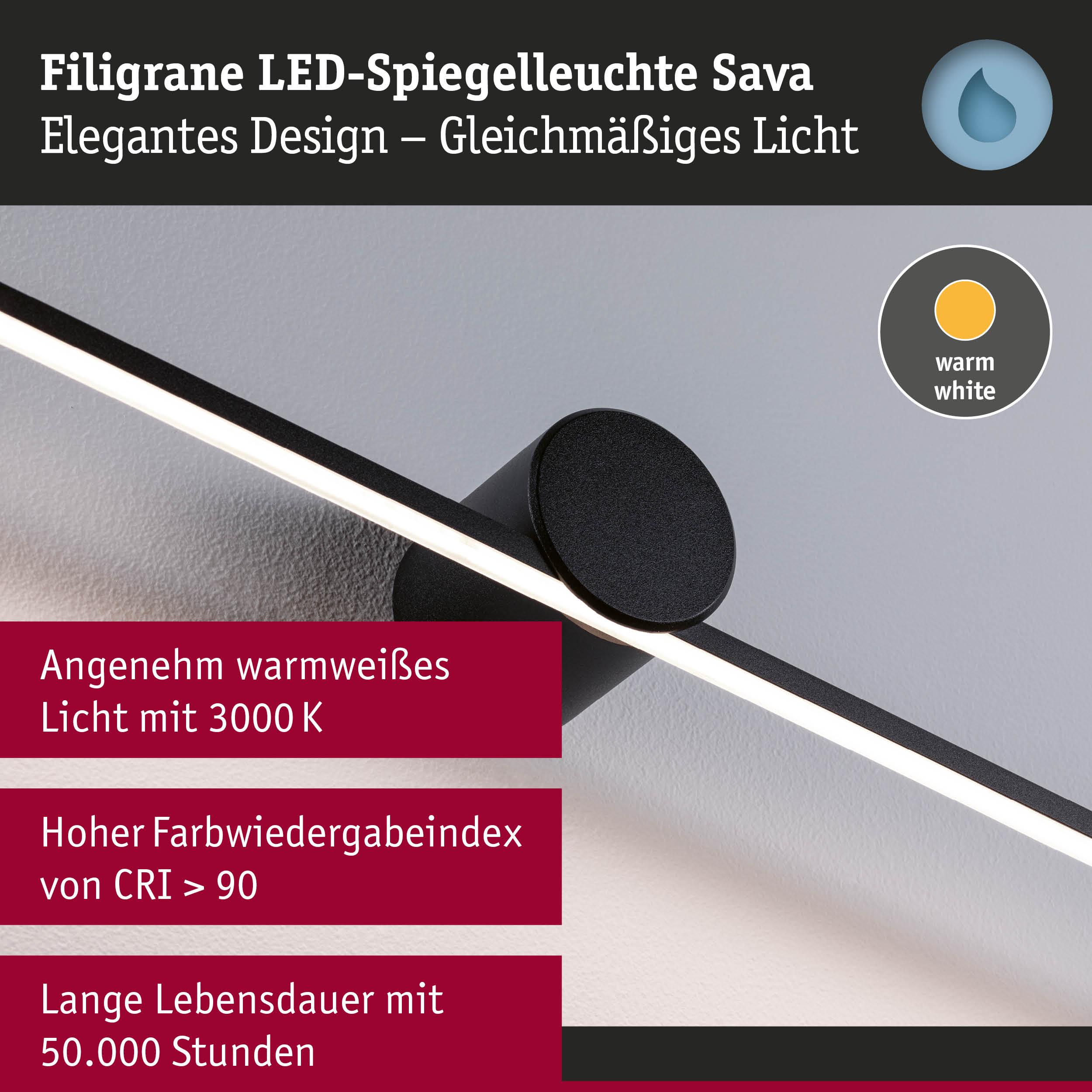 LED Spiegelleuchte Sava IP44 3000K 850lm 230V 13,5W Schwarz matt