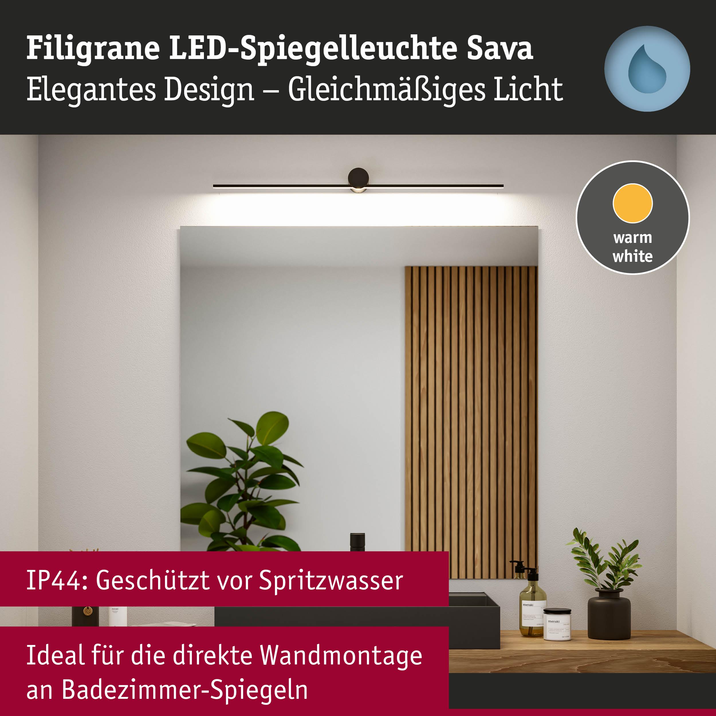 LED Spiegelleuchte Sava IP44 3000K 500lm 230V 7,5W Schwarz matt