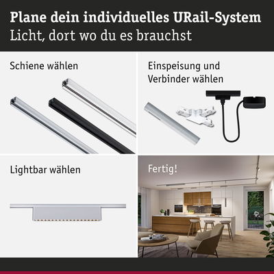 Die URail Lightbar Zelos in Chrom matt mit einer Farbtemperatur von 3000K schafft ein angenehm warmweißes Lichtambiente in Wohnräumen, Arbeitszimmern, Fluren oder anderen Räumen. Dabei sorgen die aneinandergereihten Linsen für ein gerichtetes Licht. Bestehend aus hochwertigem Aluminium und dem schlichten Design, fügt sie sich nahtlos in individuelle Wohnkonzepte ein. Die Länge von 32,2 cm ist nicht ideal? Kein Problem- Um die perfekte Länge für unterschiedliche Räume zu erreichen, können die Lightbars beliebig lang miteinander verkettet werden. Hierzu lassen sich die Endkappen ganz einfach abnehmen und mit den beiliegenden Verbindern bis zur gewünschten Länge erweitern. Auch das Verketten mit den Lightbars Ceris ist bedenkenlos möglich. Ein weiteres Highlight ist die 3-Step Dimmfunktion, mit der die Helligkeit in drei Stufen über einen handelsüblichen Lichtschalter eingestellt werden kann. Für zusätzlichen Komfort sorgt die Memoryfunktion, mit der die zuletzt gewählte Lichteinstellung bis zum nächsten Einschalten gespeichert wird.