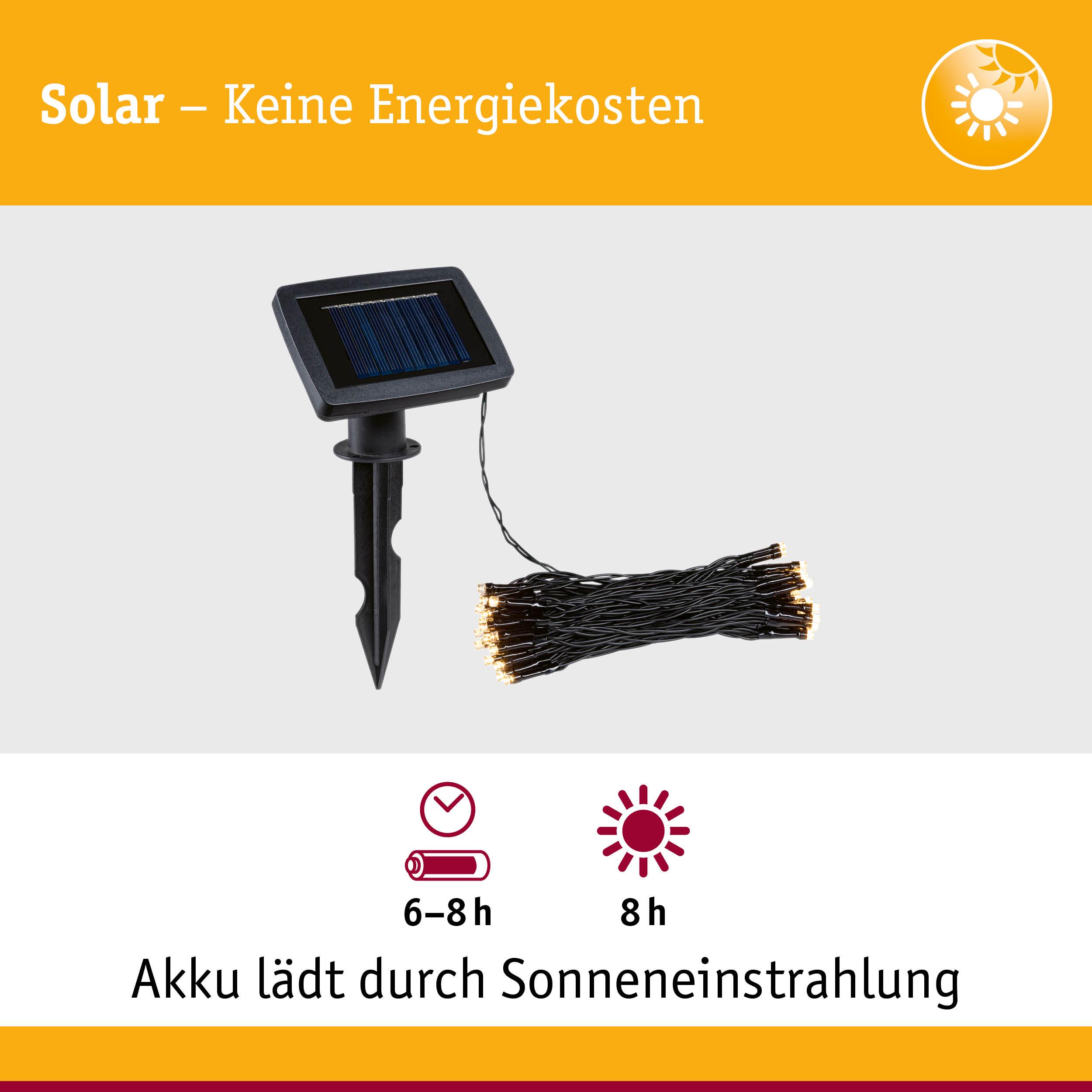 Die Solarlichterkette Aurinka erstrahlt in einem warmweißen Licht mit einer Farbtemperatur von 3000 Kelvin. Sie eignet sich perfekt, um den Außenbereich in Szene zu setzen und eine gemütliche Atmosphäre zu schaffen. Dank der Schutzklasse IP44 ist die Lichterkette spritzwassergeschützt und kann im Außenbereich verwendet werden. Ein weiteres Highlight ist der integrierte Dämmerungssensor, der dafür sorgt, dass die Lichterkette automatisch bei Einbruch der Dunkelheit angeht und bei Tageslicht wieder ausgeschaltet wird. Die LED-Lichter sind fest integriert und die Lichterkette wird solar betrieben, was nicht nur umweltfreundlich ist, sondern auch eine flexible Platzierung ermöglicht. Mit einer Länge von 7,9 Metern und 60 Lichtern bietet die Solarlichterkette Aurinka eine beeindruckende Beleuchtung und schafft eine angenehme Atmosphäre im Außenbereich.