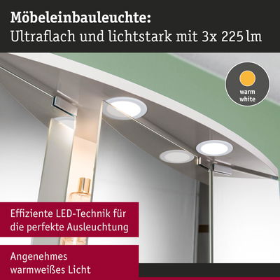 LED Möbeleinbauleuchten 3er-Set rund 65mm 3x2,5W 3x180lm 230/12V 3000K Weiß