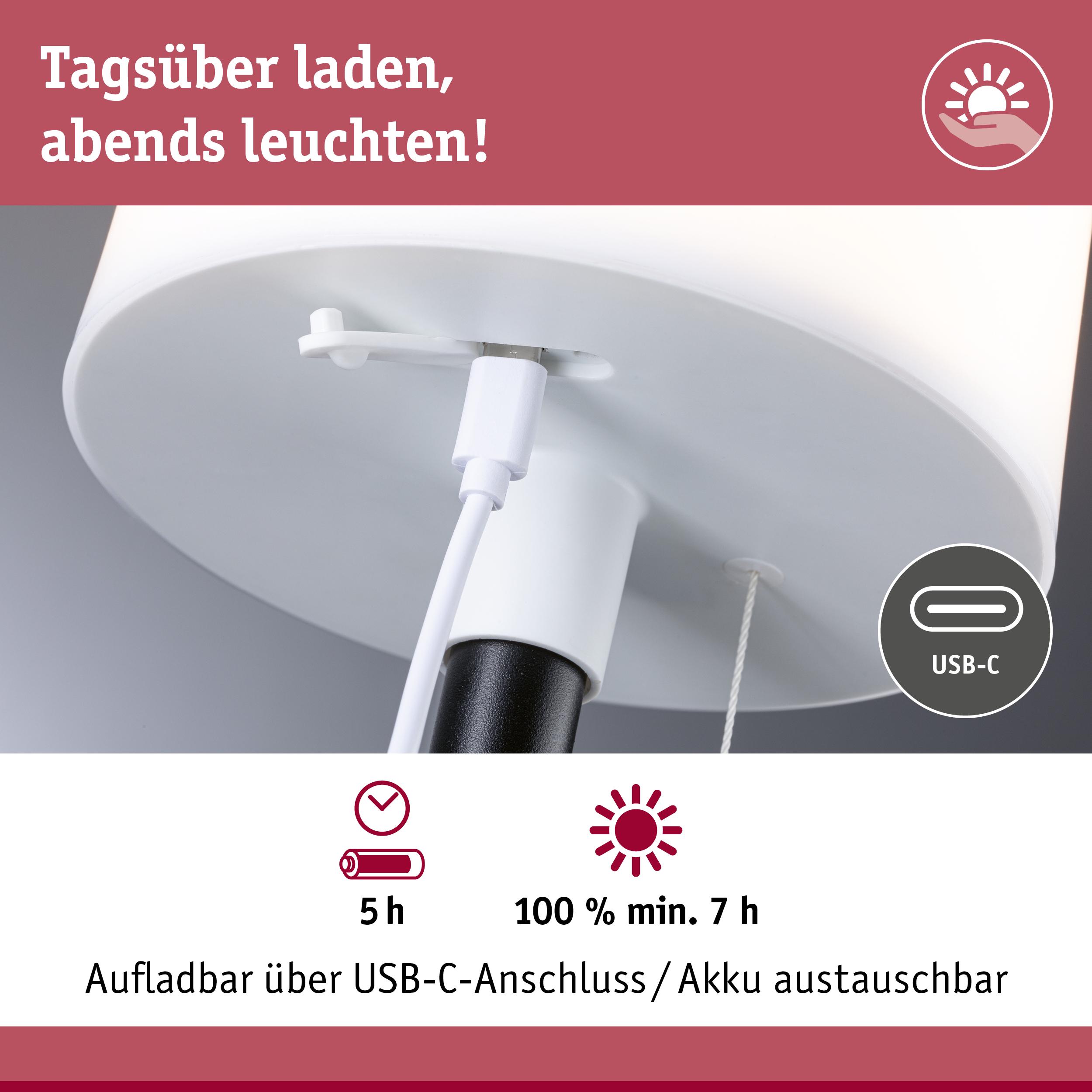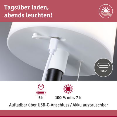 Die mobile LED Tischleuchte Bartja Schwarz ist perfekt für den Innen- und Außenbereich geeignet. Dank ihres integrierten Solarmoduls kann sie bequem über die Sonne oder alternativ per USB-C Anschluss aufgeladen werden. Mit dem praktischen Zugschalter lässt sich die Helligkeit in drei verschiedenen Stufen dimmen, wodurch eine individuelle Beleuchtungsmöglichkeit geschaffen wird. Die warmweiße Farbtemperatur von 2700 K sorgt für eine angenehme Atmosphäre in jedem Raum. Der Akku kann problemlos vom Endverbraucher entnommen werden. Mit Schutzklasse IP44 ist diese Tischleuchte auch vor Spritzwasser geschützt. Das zeitlose Design der Bartja fügt sich harmonisch in jede Umgebung ein und verleiht ihr eine elegante Note. Egal ob drinnen oder draußen, die mobile LED Tischleuchte Bartja ist die ideale Lösung, um Licht genau dort zu haben, wo man es braucht.