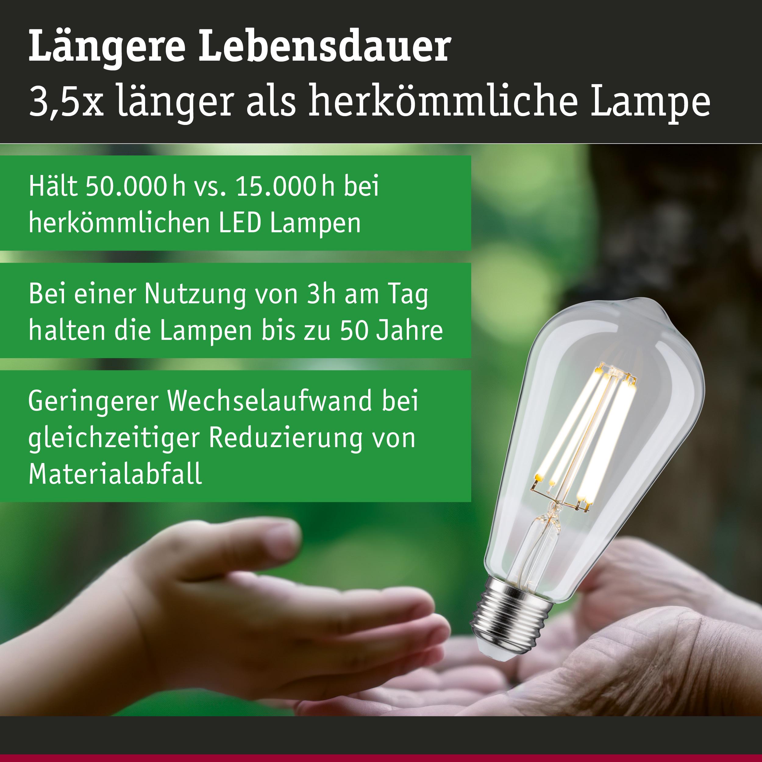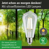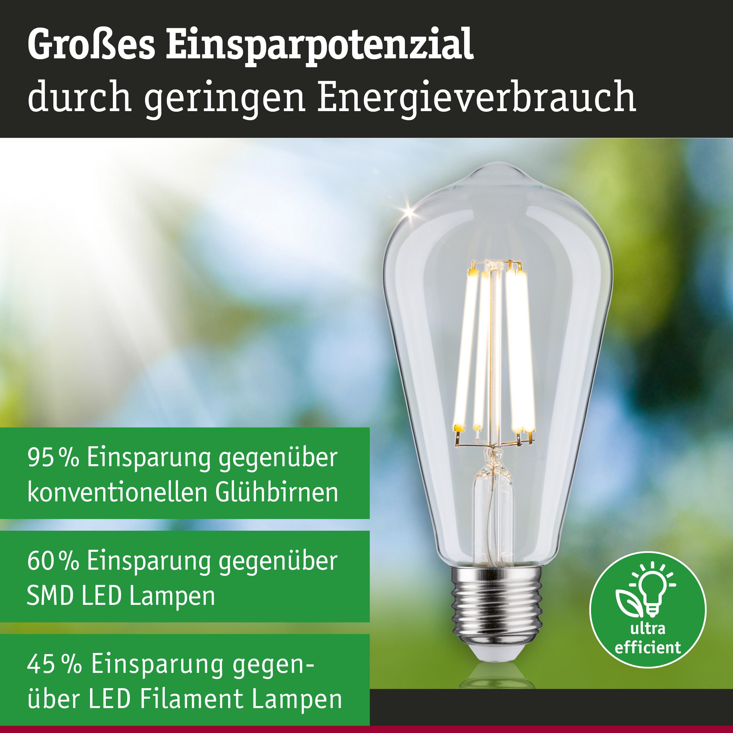 Die ultra-effizienten Leuchtmittel der Eco-Line verbinden Innovation mit Nachhaltigkeit. Durch den 60 % niedrigeren Energieverbrauch und der deutlich längeren Lebensdauer gegenüber Standard LED-Lampen lassen sich die Energiekosten deutlich senken und ganz nebenbei noch die Umwelt schonen. Die klare Filament Kolbenlampe mit 3000K, einer Leistung von 4W und 840lm gibt ihr Licht ohne Grünstich in alle Richtungen ab. Kolbenlampen sorgen für das perfekte Vintage-Gefühl und sind echte Hingucker in Retro-Pendeln. Sie hat eine warmweiße Lichtfarbe und passt in jede handelsübliche E27-Fassung. Die Paulmann LED-Lampen mit Eye friendly-Siegel bieten augenschonendes und komfortables Licht. Ob beim Arbeiten, Lesen oder Entspannen, die Lampen tragen zu besten Sehkomfort bei.