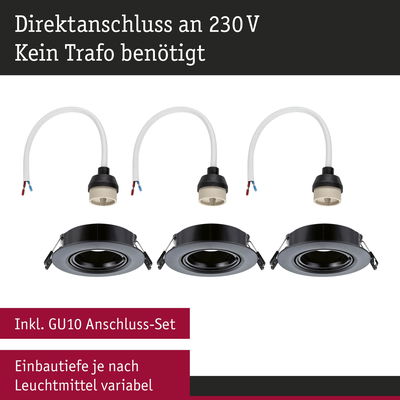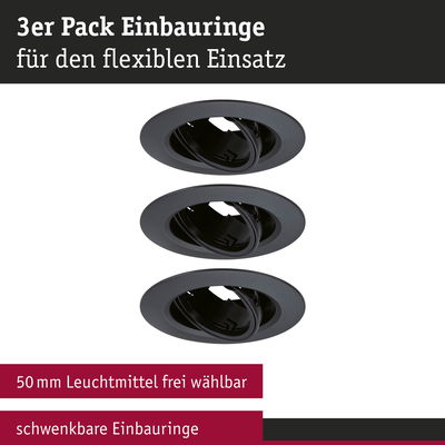 Einbauleuchte 3er-Set schwenkbar rund 90mm 30° GU10 max. 3x10W 230V dimmbar Schwarz
