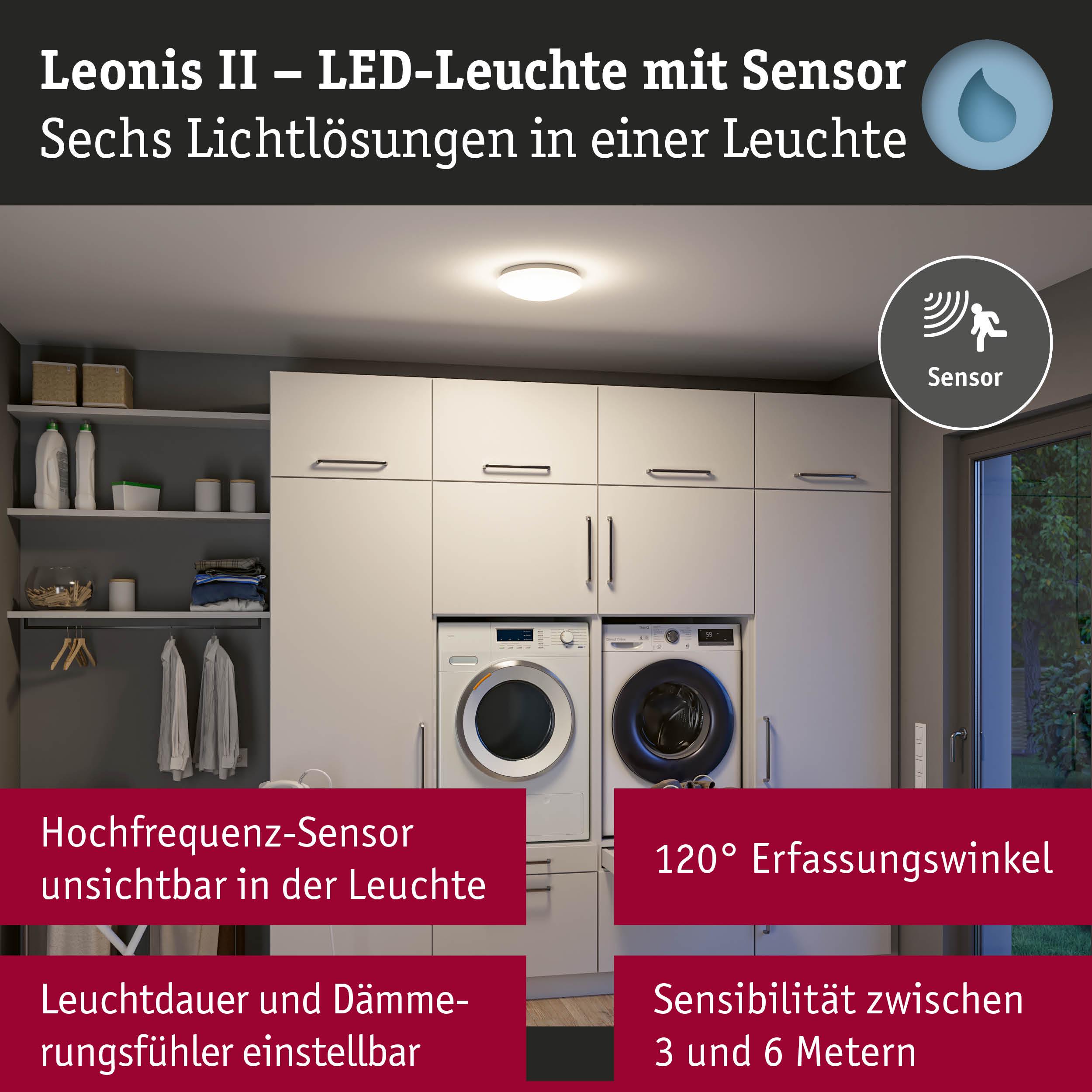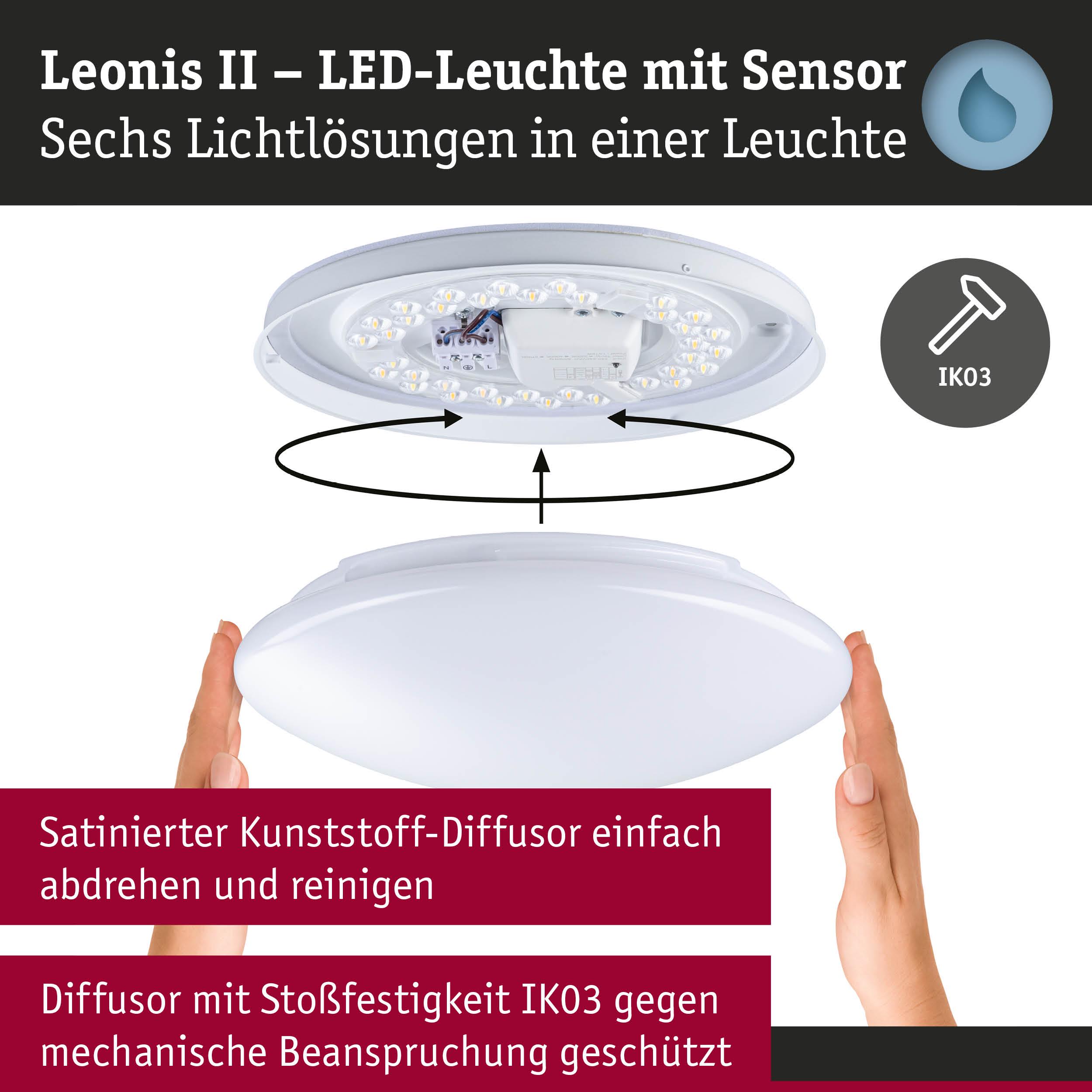 LED Deckenleuchte Leonis II Dämmerungsgesteuerter Bewegungsmelder (HF) IP44 3000 - 5700K 1750lm 230V 16,5W dimmbar Weiß