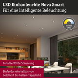 Das smarte Einbauleuchten Set Nova Coin in Eisen gebürstet mit Farbwechselfunktion schafft in jedem Raum ein individuelles Wohnambiente. Im Lieferumfang sind drei austauschbare LED-Leuchtmittel inklusive hochwertigen Alu-Einbauringen enthalten. Durch die Schwenkbarkeit der Leuchten lässt sich das Licht überall dort hinlenken, wo es benötigt wird. Mit einer Leistung von 3x6 Watt und Zigbee 3.0-Steuerung sorgen sie für eine effiziente und innovative Beleuchtungslösung. Zigbee 3.0 ist ein Funkübertragungsprotokoll, das Geräte verschiedener Hersteller miteinander vernetzt. So lassen sich die Leuchten per App, Fernbedienung oder Sprachbefehl einzeln oder gemeinsam steuern: Ob gemütliches warmes Goldlicht (2200K) oder sachlich helles Tageslichtweiß (6500K) - über die Tunable White Funktion kann die Lichtfarbe nach Bedarf eingestellt werden. Die stufenlose Dimmfunktion ermöglicht eine individuelle Anpassung der Helligkeit und sorgt für helles Arbeitslicht und gemütliche Wohlfühlbeleuchtung in einem. Einfach und bequem sind die smarten Einbauleuchten weiterhin über einen handelsüblichen Lichtschalter ein- und ausschaltbar. Der integrierte Memory-Effekt merkt sich dabei immer die zuletzt genutzte Lichteinstellung - für maximalen Komfort.