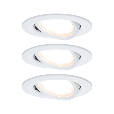 Die runden Nova Plus Einbauleuchten (3er-Set) in Weiß matt mit tauschbarem LED-Coin, eignen sich sowohl für Neuinstallationen als auch für den Austausch bestehender Installationen. Sie sind besonders flach und können deshalb in Decken mit einem Hohlraum von nur 30 Millimetern eingebaut werden. Durch die Verkettung der Einzelleuchten mittels Schnellklemmen, lassen sie sich schnell und einfach einbauen. Die Dimmfunktion ermöglicht eine individuelle Anpassung der Helligkeit und sorgt für warmweißes Arbeitslicht und gemütliche Wohlfühlbeleuchtung in einem. Dank der Schwenkbarkeit kann der Spot individuell ausgerichtet werden.