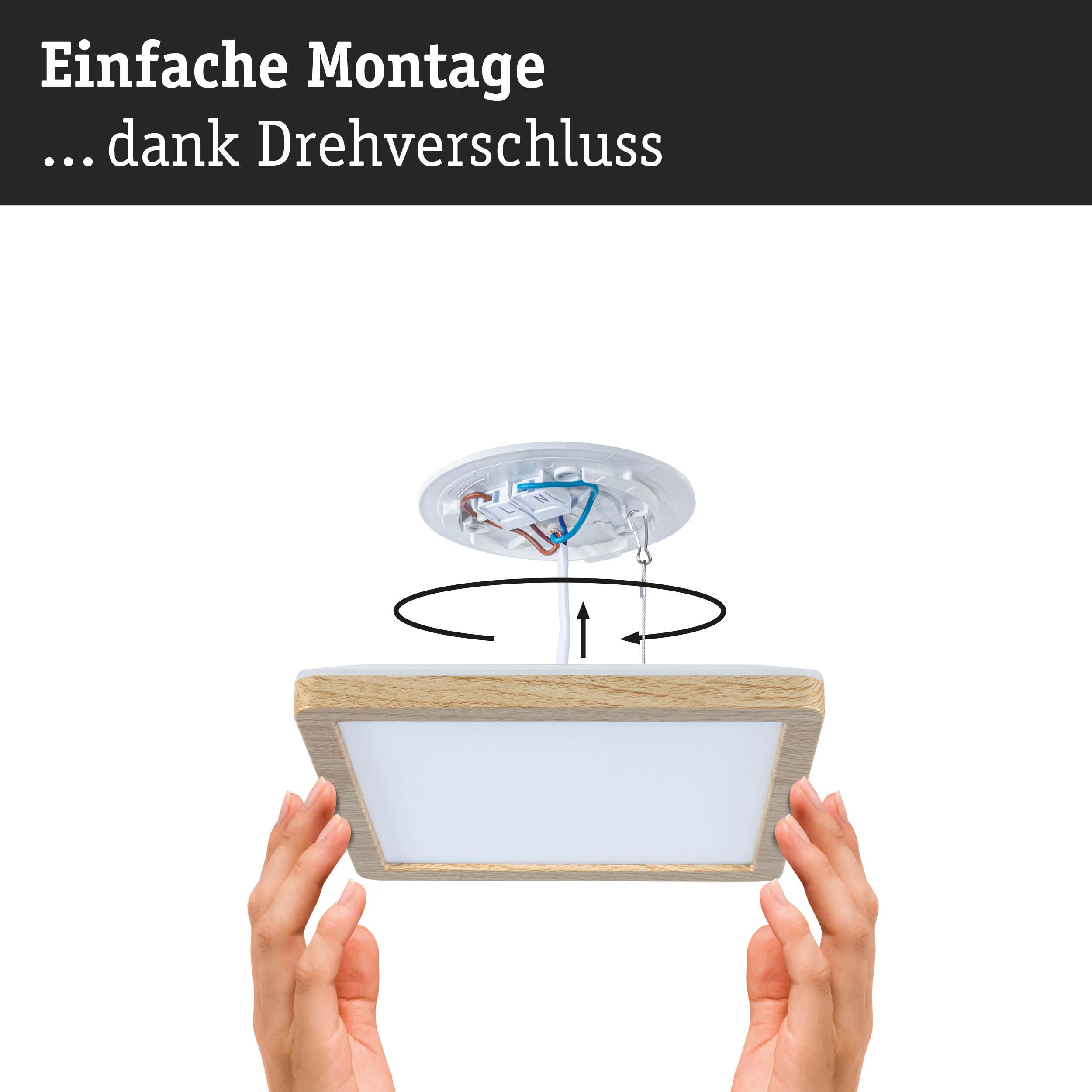 Das eckige Atria Shine Panel in Holzoptik ist mit seiner hohen Energieeffizienz und Vielfalt an Lichtfarben ein echter Allrounder! Mit seiner verbesserten Energieeffizienz des LED Moduls, die von Klasse E auf Klasse B gesteigert wurde, bietet das neue Atria Shine Panel eine innovative und zukunftsfähige Beleuchtungslösung. Der deutlich reduzierte Energieverbrauch ist nicht nur gut für die Umwelt, sondern dank der geringeren Energiekosten auch für den Geldbeutel. Mit einer Größe von 190x190mm und einer Leistung von 9,5 Watt eignet sich das LED Panel neben der Grundbeleuchtung von Wohn- und Schlafräumen, insbesondere für den Einsatz in Badezimmern, Küchen oder anderen Feuchträumen. Vor der Montage kann über den White Select Schalter zwischen drei Lichtfarben gewählt werden: warmweiß (3000K), neutralweiß (4000K) oder tageslichtweiß (6500K). Egal, ob für den gemütlichen Wohnbereich, für die funktionale Beleuchtung in Küchen oder für hell beleuchtete Arbeitszimmer- für jeden Raum die passende Lichtatmosphäre. Optisch überzeugt die Leuchte mit einem nahezu schwebenden Erscheinungsbild, dank der effektvollen Backlight-Technik. Durch ihr schlichtes Design fügt sie sich optimal in individuelle Einrichtungsstile ein und kann dank IP44-Schutz sogar im Badezimmer eingesetzt werden. Die Montage an der Wand oder Decke gestaltet sich mit dem einfachen Drehverschluss und der Schnellklemme unkompliziert.