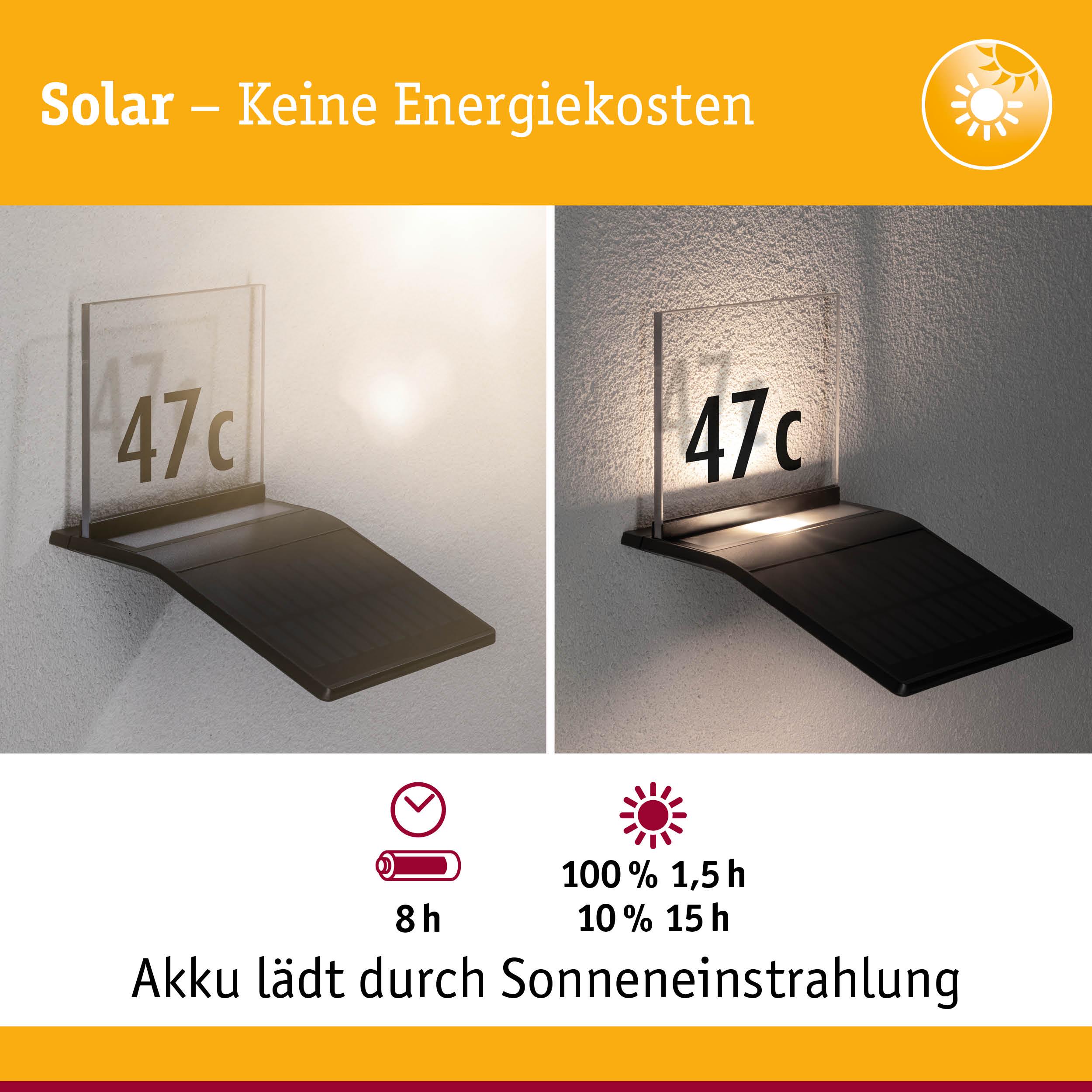 Solar LED Hausnummernleuchte Yoko Dämmerungsgesteuerter Bewegungsmelder (IR) IP44 3000K 42lm Anthrazit