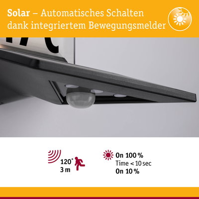 Solar LED Hausnummernleuchte Yoko Dämmerungsgesteuerter Bewegungsmelder (IR) IP44 3000K 42lm Anthrazit