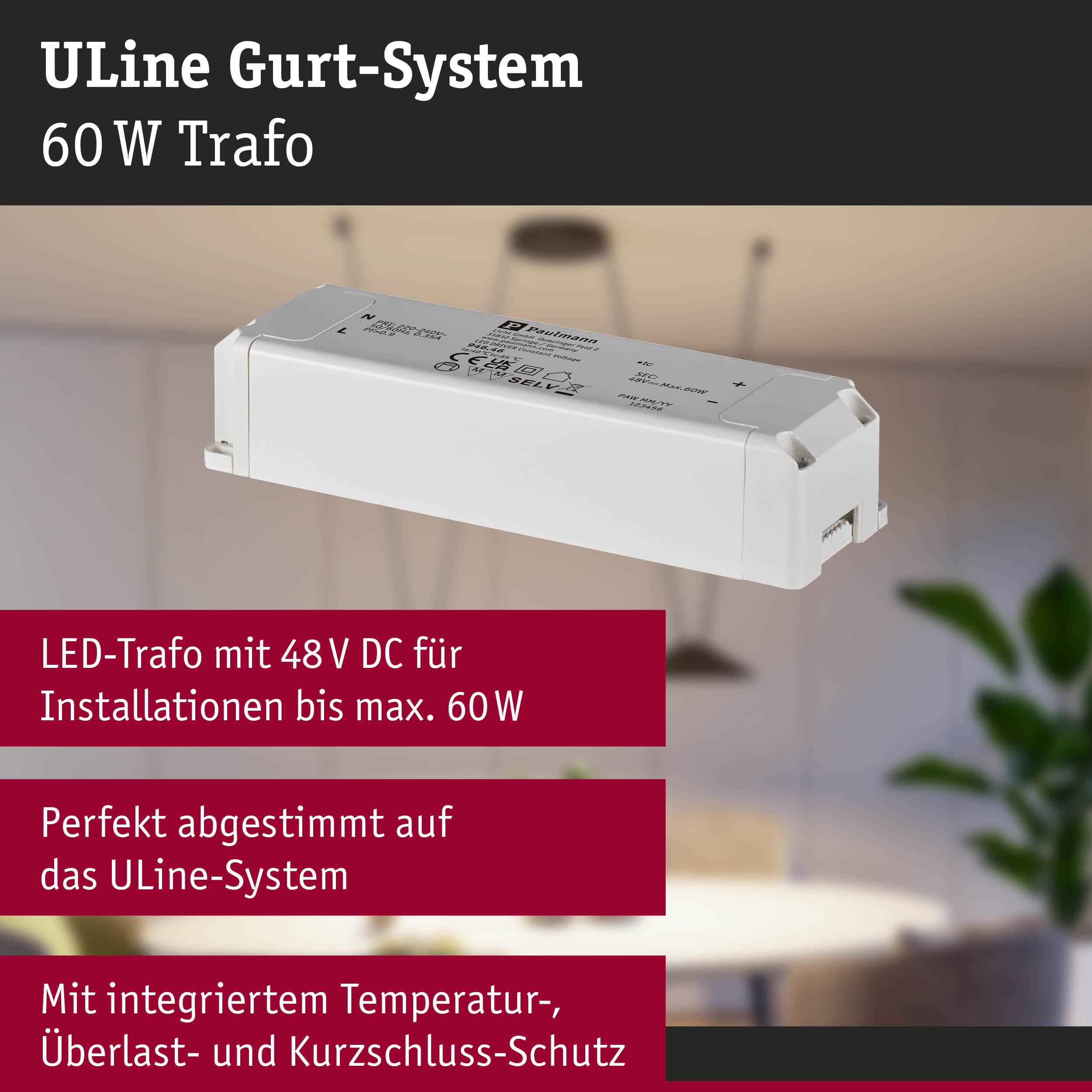 Dieser hochwertige und leistungsstarke Trafo mit 48 V DC ist optimal abgestimmt auf das ULine Gurt-System und eignet sich für individuelle Installationen bis max. 60 W. Mit einer Lebensdauer von 50.000 h ist er besonders robust und langlebig. Ein integrierter Temperatur-, Überlast- und Kurzschluss-Schutz gewährleistet eine sichere und zuverlässige Stromversorgung. Das ULine Gurt-System ist eine innovative Lösung für einzigartige Lichterlebnisse in allen Raumdimensionen und ermöglicht eine gezielte Lichtinszenierung an Wänden, Decken und Böden.