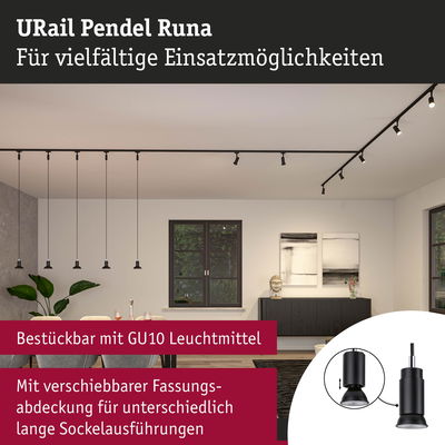 URail Pendel Runa GU10 max. 10W dimmbar 230V Schwarz matt