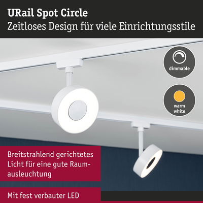 URail Schienenspot Circle 180lm 5W 3000K dimmbar 230V Signalweiß