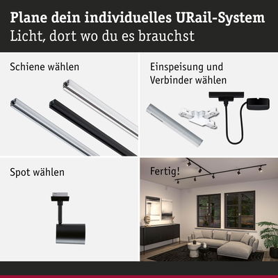 Der moderne URail Spot Luxe in Schwarz matt zeichnet sich durch sein geradliniges Design aus. Der Spot verfügt über eine abgedeckte GU10-Fassung, wodurch die Wahl des Leuchtmittels frei ist. Dadurch wird das Licht sanft gestreut und schafft eine angenehme Atmosphäre. Mit einem smarten Leuchtmittel kann der Spot bequem per App gesteuert werden. Die Helligkeit kann eingestellt, verschiedene Farbtöne gewählt oder stimmungsvolle Lichtszenarien geschaffen werden - alles mit nur einem Fingertipp. Der URail Spot Luxe ist der ideale Begleiter für jeden Raum. Seine hochwertige Verarbeitung und das zeitlose Design machen ihn zu einem echten Blickfang.