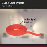 Der ULine-Gurt dient als Grundlage des 48V-Gurt-Systems. Er ist in zwei Längen (5 m und 10 m) und jeweils fünf Farben – von klassischem Schwarz bis außergewöhnlichem Orange – erhältlich, kann frei im Raum platziert und bei Bedarf mit einer Schere gekürzt werden. Zugehörige Leuchten lassen sich nach Belieben am Gurt arrangieren. Der 2,1 cm breite Gurt wird mit passenden Halterungen an Wand, Decke oder Boden befestigt. So lässt sich ein persönliches Lichtkonzept in wenigen Schritten umsetzen. Das reißfeste und haltbare Dacron-Material des Gurtes sorgt für eine lange Lebensdauer und hohe Belastbarkeit. Die Gurte sind beschichtet und einfach zu reinigen. Ein besonderes Highlight ist die innenliegende, unsichtbare Stromführung, die eine saubere Optik ohne sichtbare Drähte ermöglicht. Bei allen Gurten sind zwei Endkappen aus Silikon für einen ästhetischen Abschluss enthalten. Das ULine Gurt-System ist eine innovative Lösung für einzigartige Lichterlebnisse in allen Raumdimensionen und ermöglicht eine gezielte Lichtinszenierung an Wänden, Decken und Böden.