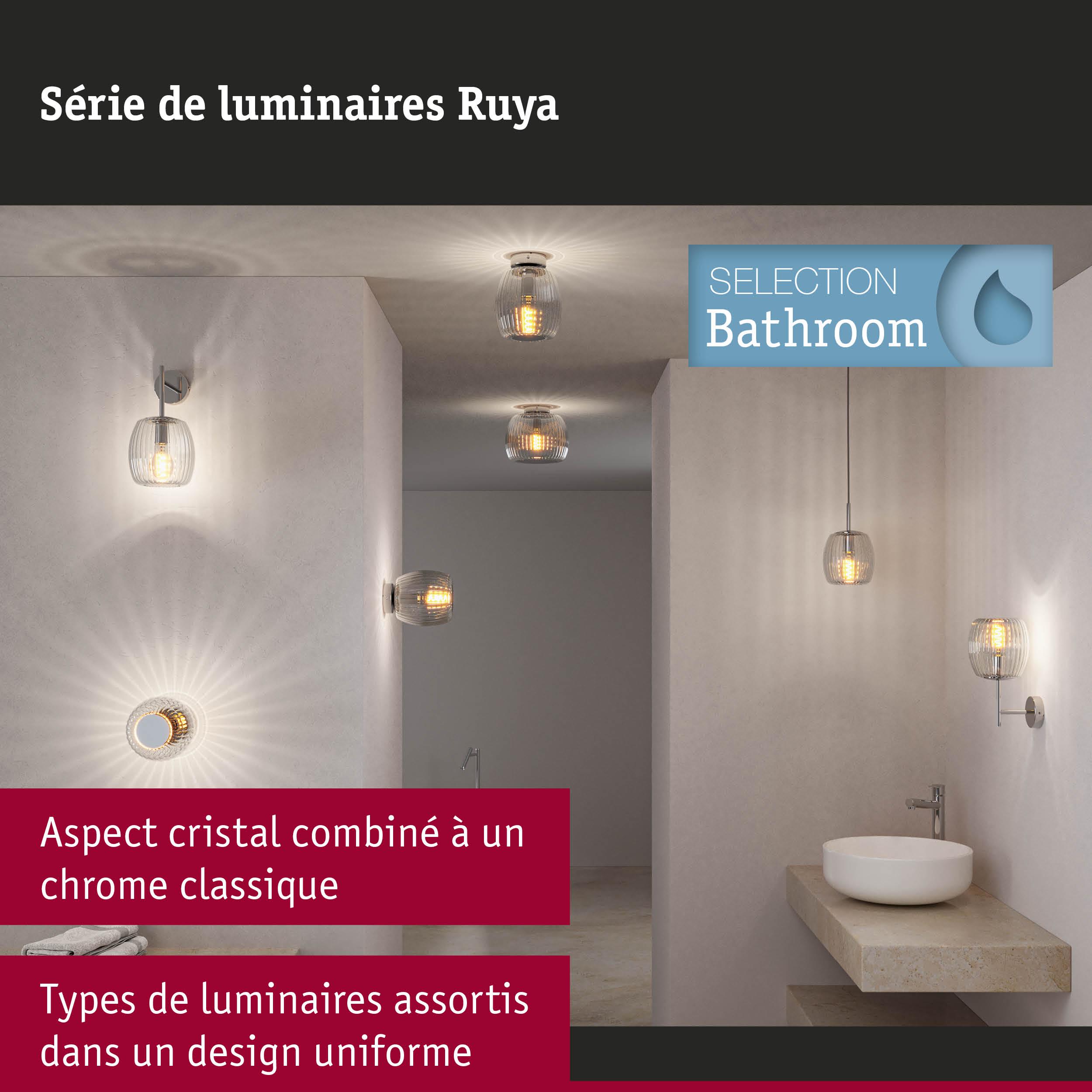 Le luminaire en suspension Ruya en Verre/Chrome est un accessoire élégant qui confère à chaque pièce une note d'élégance. L'aspect cristallin et limpide du luminaire produit des effets lumineux merveilleux et crée une atmosphère agréable. Grâce à la classe de protection IP44, la Ruya convient pour les espaces humides comme la salle de bain ou la cuisine qu'elle pare d'accents lumineux uniques. La gamme Ruya propose différents types de luminaires pour les murs, les plafonds ou les miroirs afin de répondre aux besoins individuels de chacun. La longueur de la suspension de Ruya est raccourcissable entre 700 et 1 500 mm.