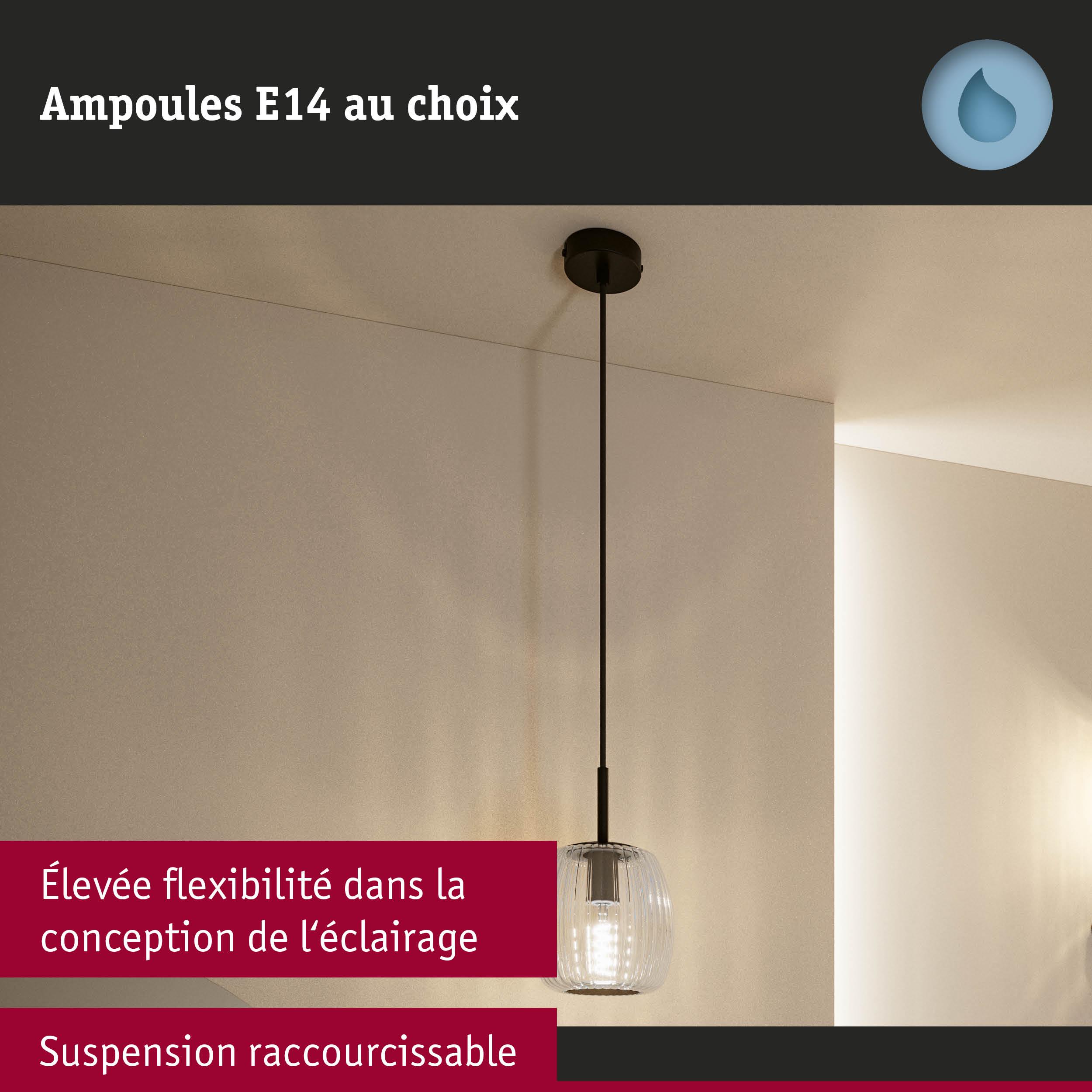 Luminaire en suspension LED Ruya E14 max. 20W Verre/Noir mat