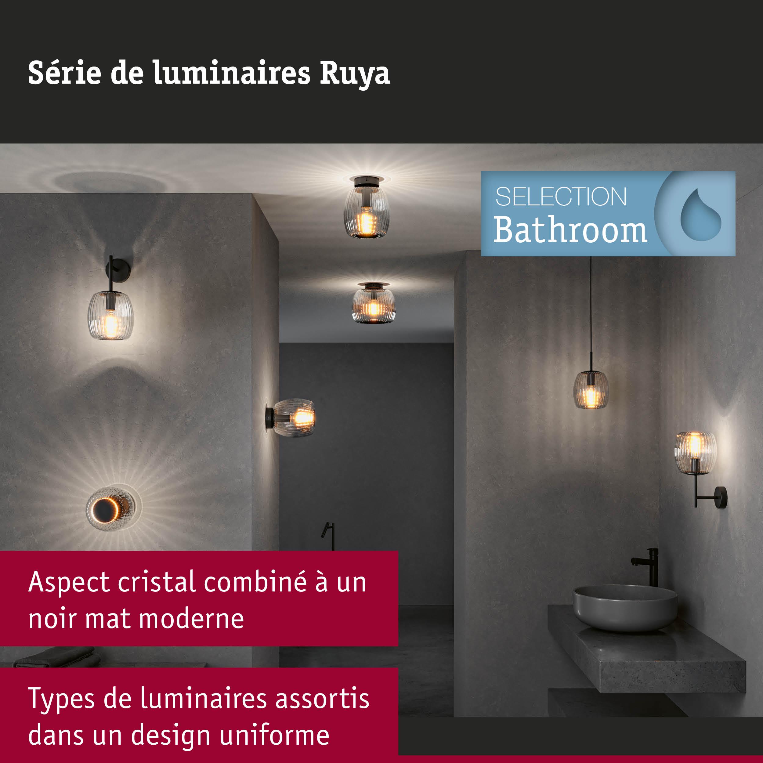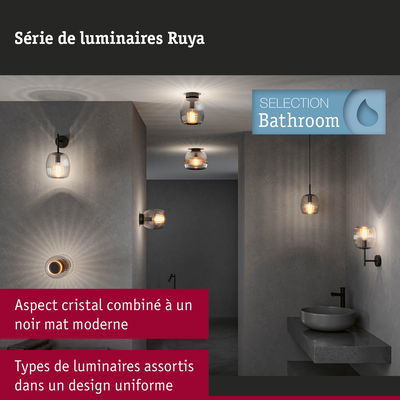Le luminaire en suspension Ruya en Verre/Noir mat est un accessoire élégant qui confère à chaque pièce une note d'élégance. L'aspect cristallin et limpide du luminaire produit des effets lumineux merveilleux et crée une atmosphère agréable. Grâce à la classe de protection IP44, la Ruya convient pour les espaces humides comme la salle de bain ou la cuisine qu'elle pare d'accents lumineux uniques. La gamme Ruya propose différents types de luminaires pour les murs, les plafonds ou les miroirs afin de répondre aux besoins individuels de chacun. La longueur de la suspension de Ruya est raccourcissable entre 700 et 1 500 mm.