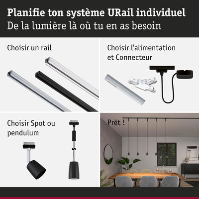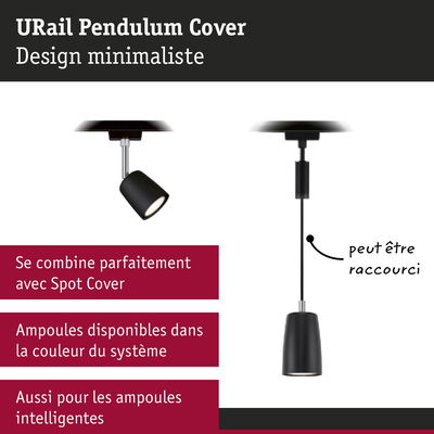 La suspension URail Cover en Noir mat convient parfaitement à une suspension multiple au-dessus des tables à manger ou à une suspension simple au-dessus des comptoirs ou des tables d’appoint. Il n'y a plus aucune limite à votre créativité. On peut choisir son ampoule en fonction de ses préférences et de ses besoins propres. Les ampoules smart permettent de contrôler le luminaire grâce à l'application. Avec sa longueur totale de 1,50 m (avec abat-jour et pied URail), cette suspension est non seulement belle, mais aussi très pratique à utiliser. Les pièces sont noyées dans une lumière agréable, et elles dégagent une atmosphère singulière. Si nécessaire, la suspension URail peut être raccourcie. Vous trouverez des instructions détaillées étape par étape dans la FAQ du centre d'assistance.