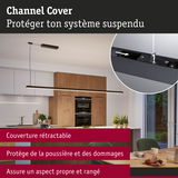 Le cache pratique de 1 mètre pour les composants d'éclairage droits du système Linion offre une solution pratique pour protéger les composants à l'intérieur du conduit de la poussière lors d'un montage en suspension. Il s'insère par l'arrière, ce qui facilite le montage et le démontage. Si nécessaire, le cache peut être facilement raccourci. Sa couleur s'intègre parfaitement au système de canaux lumineux Linion et confère un aspect esthétique et épuré au montage suspendu.