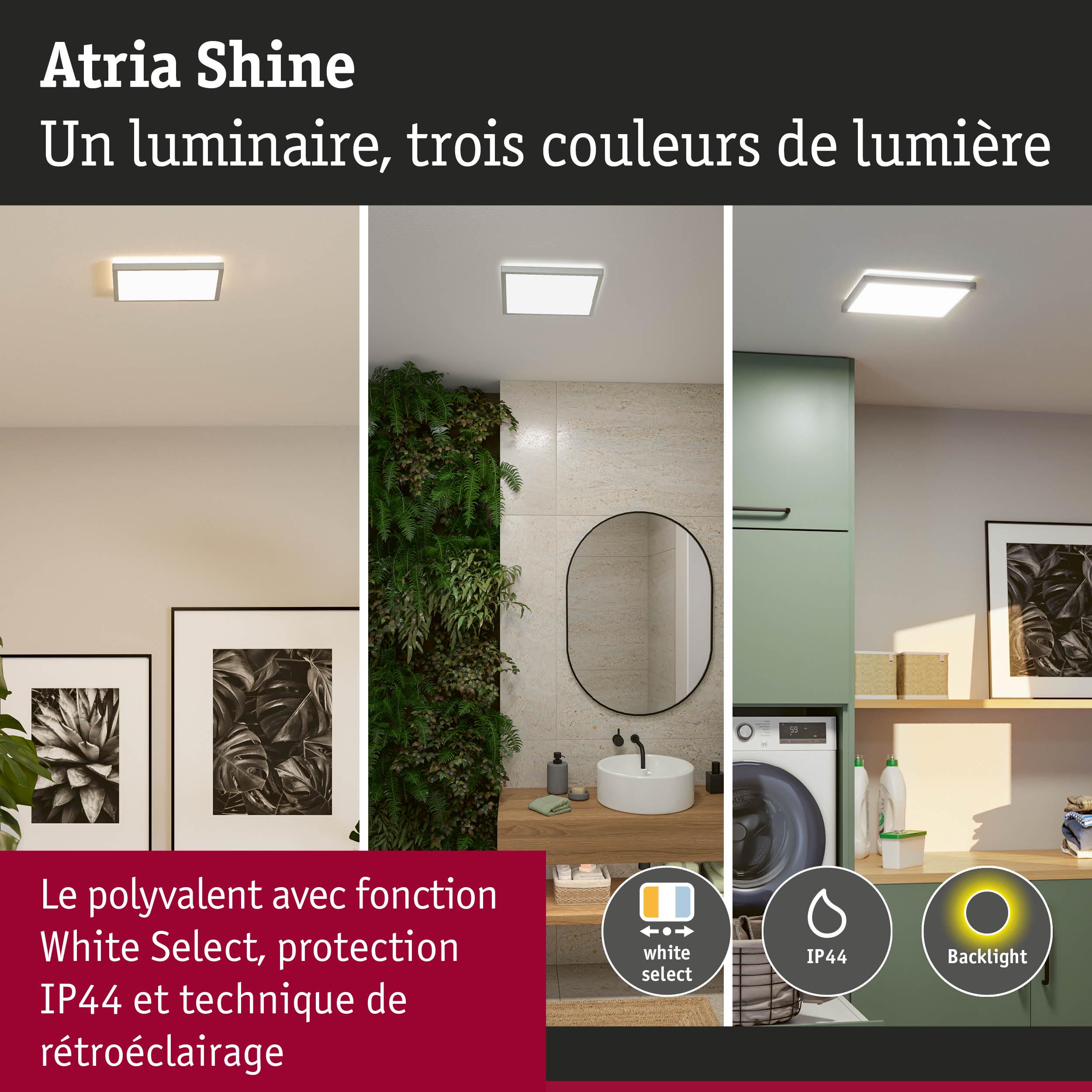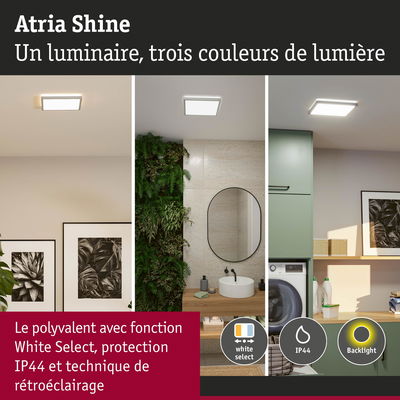 Panneau LED Atria Shine IP44 carré 298x298mm 15,7W 2100lm 3000 - 6500K Chrome mat