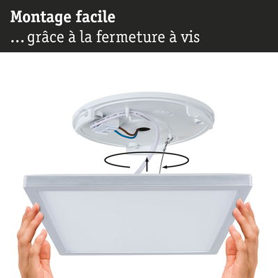 Le carrépanneau Atria Shine en Chrome mat est vraiment polyvalent grâce à sa grande performance énergétique et sa variété de couleurs de feu ! Avec sa performance énergétique améliorée, passée de la classe E à la classe B, le nouveau panneau Atria Shine offre une solution d’éclairage innovante et durable. Cette réduction significative de la consommation d'énergie est non seulement bénéfique pour l'environnement, mais aussi pour le porte-monnaie. Avant l'installation, l'interrupteur White Select permet de choisir entre trois températures de couleur : blanc chaud (3000 K), blanc neutre (4000 K) ou blanc lumière du jour (6500 K). Que ce soit pour un espace de vie confortable, l'éclairage fonctionnel d'une cuisine ou un bureau bien éclairé, il existe une atmosphère lumineuse adaptée à chaque pièce. Avec une luminosité impressionnante de 15,7W, le panneau Atria Shine est également idéal pour les applications exigeantes qui nécessitent beaucoup de lumière. L’aspect visuel du luminaire se distingue par son apparence presque flottante, obtenue grâce à la technologie Backlight efficace. Grâce à son design sobre, il s'intègre parfaitement dans différents styles d'aménagement et peut même être utilisé dans la salle de bains grâce à sa protection IP44. Le montage au mur ou au plafond est simple grâce à la fermeture rotative et au clip de fixation rapide.