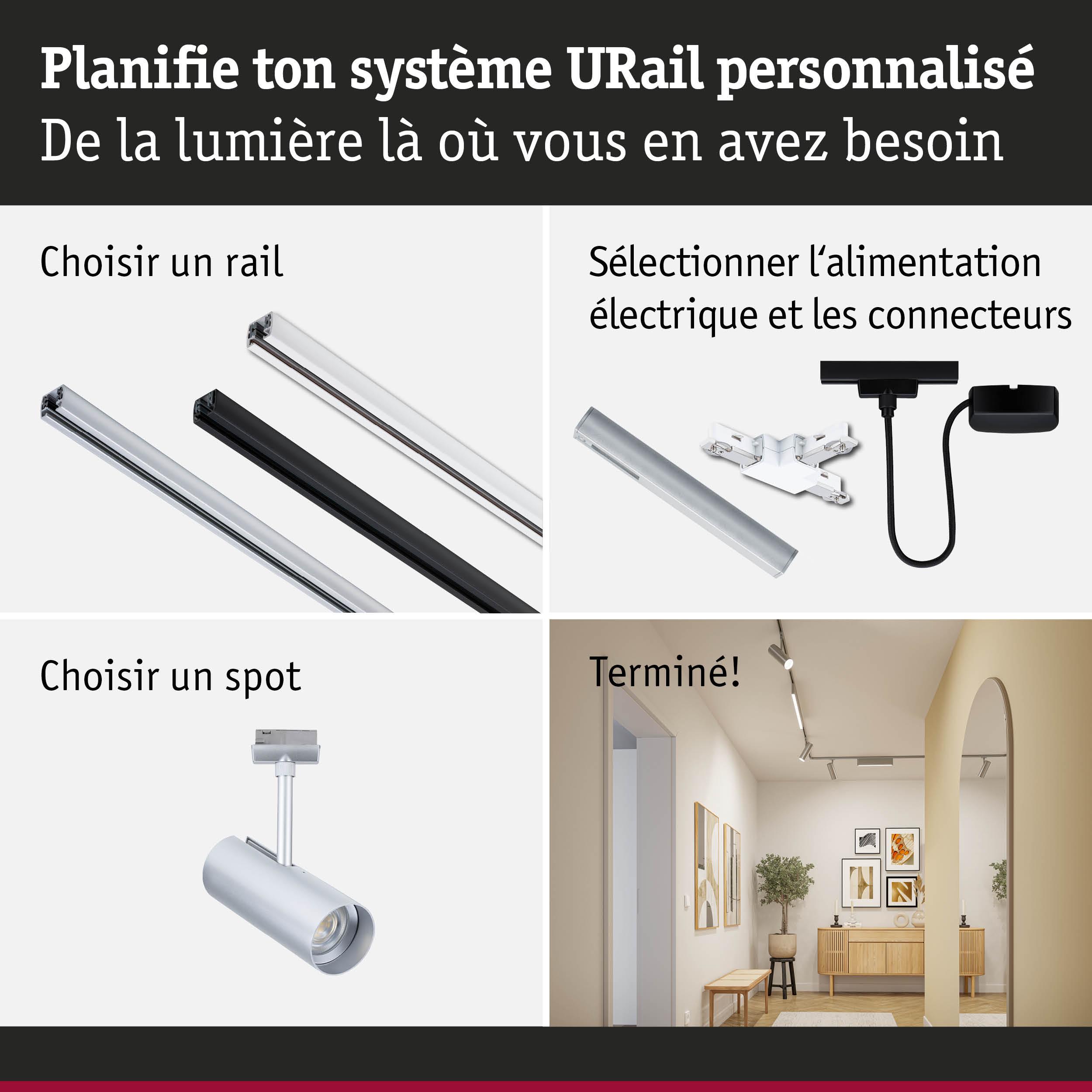 URail Spot sur rail Theron Spot individuel 1020lm 11W 3000K gradable 230V Chrome mat