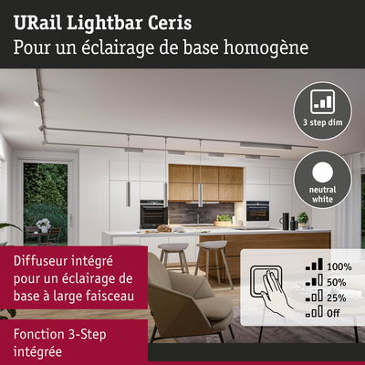 URail Lightbar 3-Step-Dim Ceris 850lm 9,5W 4000K gradable 230V Chrome mat