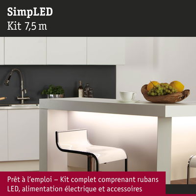 SimpLED Strip LED Blanc chaud Kit complet 7,5m revêtue 20W 300lm/m 60 LEDs/m 3000K 24VA