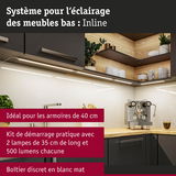 Éclairage sous-meubles LED Inline Kit de démarrage 3000K gradable 2x4W 350x26mm 2x350lm 24V Blanc dépoli