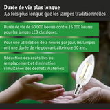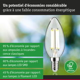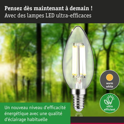 Les ampoules ultra efficaces de l'Eco-Line combinent innovation et durabilité. Grâce à une consommation d'énergie réduite de 60 % et à une durée de vie résolument plus longue que celle des ampoules LED standard, il est possible de réduire considérablement les coûts énergétiques tout en préservant l'environnement. L’ampoule en forme de bougie avec 4000 K, une puissance de 2,5 watts et 525 lm diffuse un éclairage uniforme agréable sans teinte verdâtre. Avec leur forme fine, les flammes conviennent particulièrement bien aux lustres, appliques et plafonniers et diffusent une lumière harmonieuse propice au bien-être dans la maison. L’ampoule est compatible avec les douilles E14 conventionnelles.