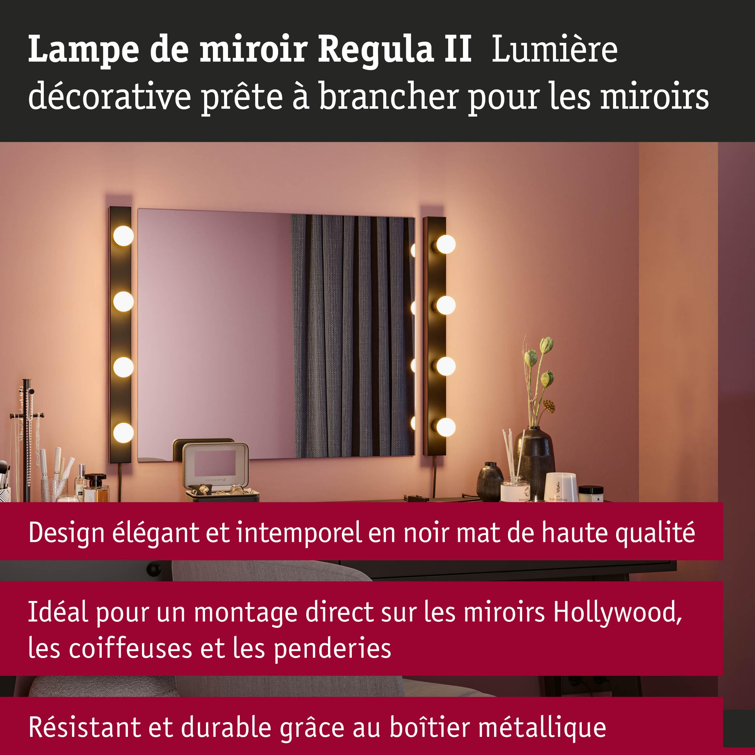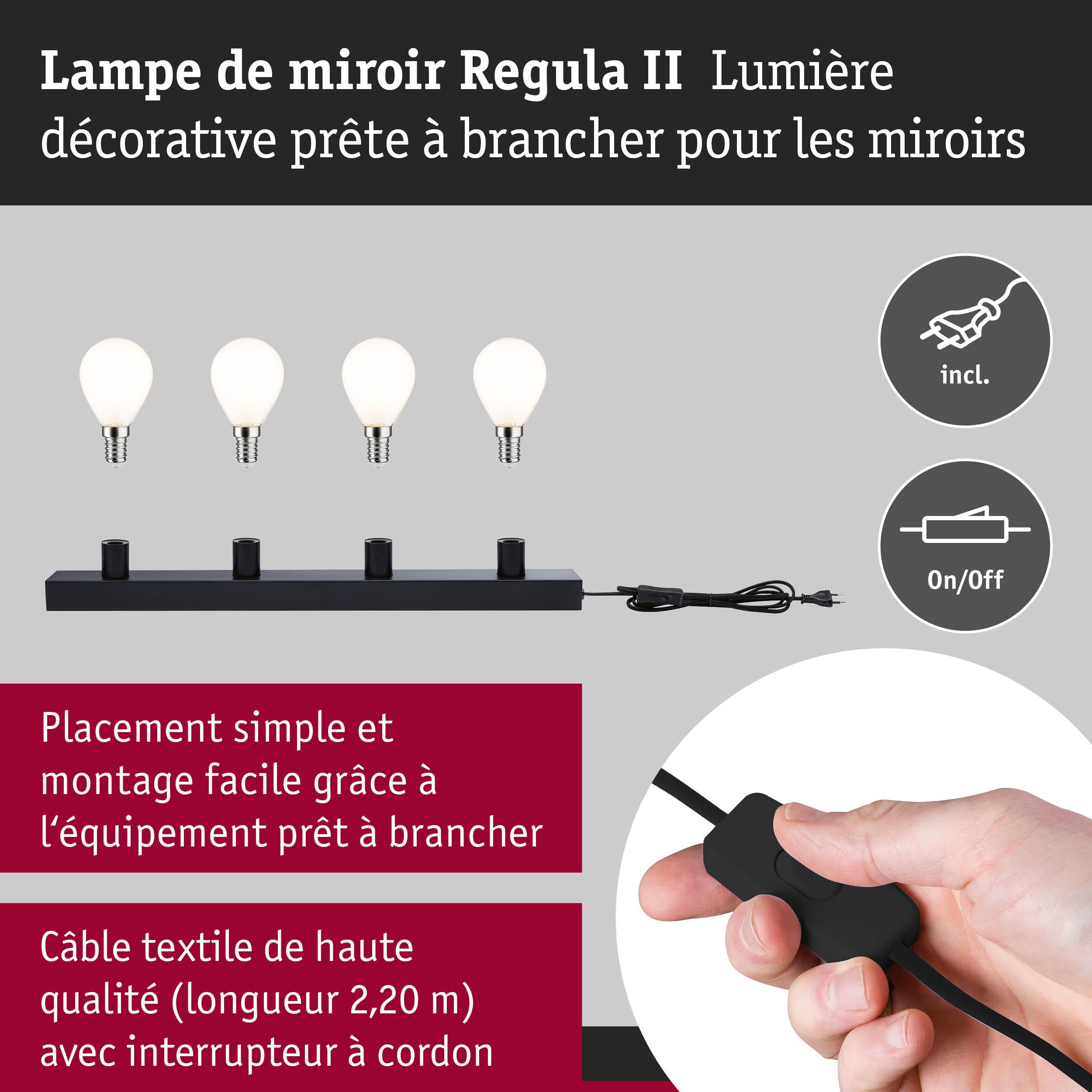 Kit Éclairage de miroir Regula II ampoules incluses 4-flammes E14 2700K 4x470lm 230V 4x4,5W gradable Noir/Opale