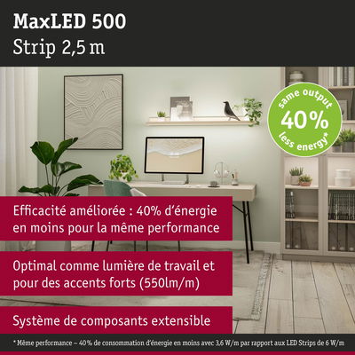 MaxLED 500 Strip LED Extension 2,5m blanc chaud 9W 550lm/m 2700K