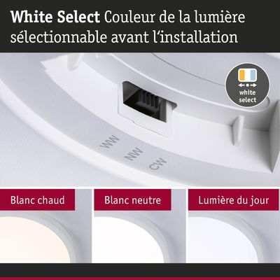- Choix individuel de la température de couleur (3000 K, 4000 K, 6500 K) avant l’installation grâce à la fonction White Select