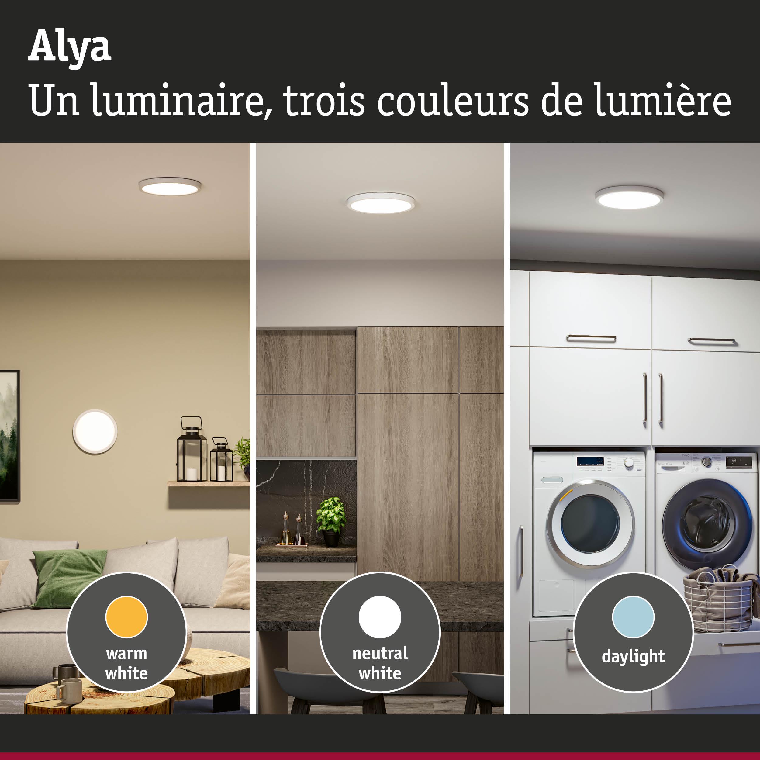 Le panneau en saillie LED Alya, d'un diamètre de 300mm, offre de multiples possibilités pour répondre aux besoins d'éclairage individuels dans toutes les pièces. La fonction innovante White Select permet de choisir la température de couleur avant l'installation, en fonction des besoins personnels ou des domaines d'application. Grâce à la fonction White Select, le panneau est entièrement utilisable dans tous les locaux. Qu'il s'agisse d'un éclairage blanc chaud pour le salon, d'un éclairage blanc neutre pour la cuisine ou d'un éclairage blanc lumière du jour pour les salles de loisirs ou les caves, le panneau Alya offre toujours la bonne couleur de lumière. Avec ses différentes températures de couleur de 3 000 K, 4 000 K, 4 000 K et 6 500 K, le panneau offre une solution d'éclairage flexible pour tous les besoins. Son design sobre et sa conception plate s'intègrent harmonieusement dans tout environnement et assurent un éclairage uniforme et agréable.
