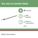 La réglette LED Plug & Shine à encastrer sur le sol veille à un éclairage étendu des haies, grillages et murs de la maison. La fonte d'aluminium coulée sous pression résistante aux intempéries et la protection contre les projections d'eau IP67 font de la barre lumineuse un compagnon de longue durée pour l'extérieur. Avec les transfos, connecteurs et autres luminaires de la collection Plug & Shine, vous pouvez organiser en toute quiétude vos jeux de lumière pour l'extérieur.