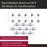 Spot encastré Kit de 10 orientable rond 90mm 30° GU10 max. 10x10W 230V gradable Chrome mat