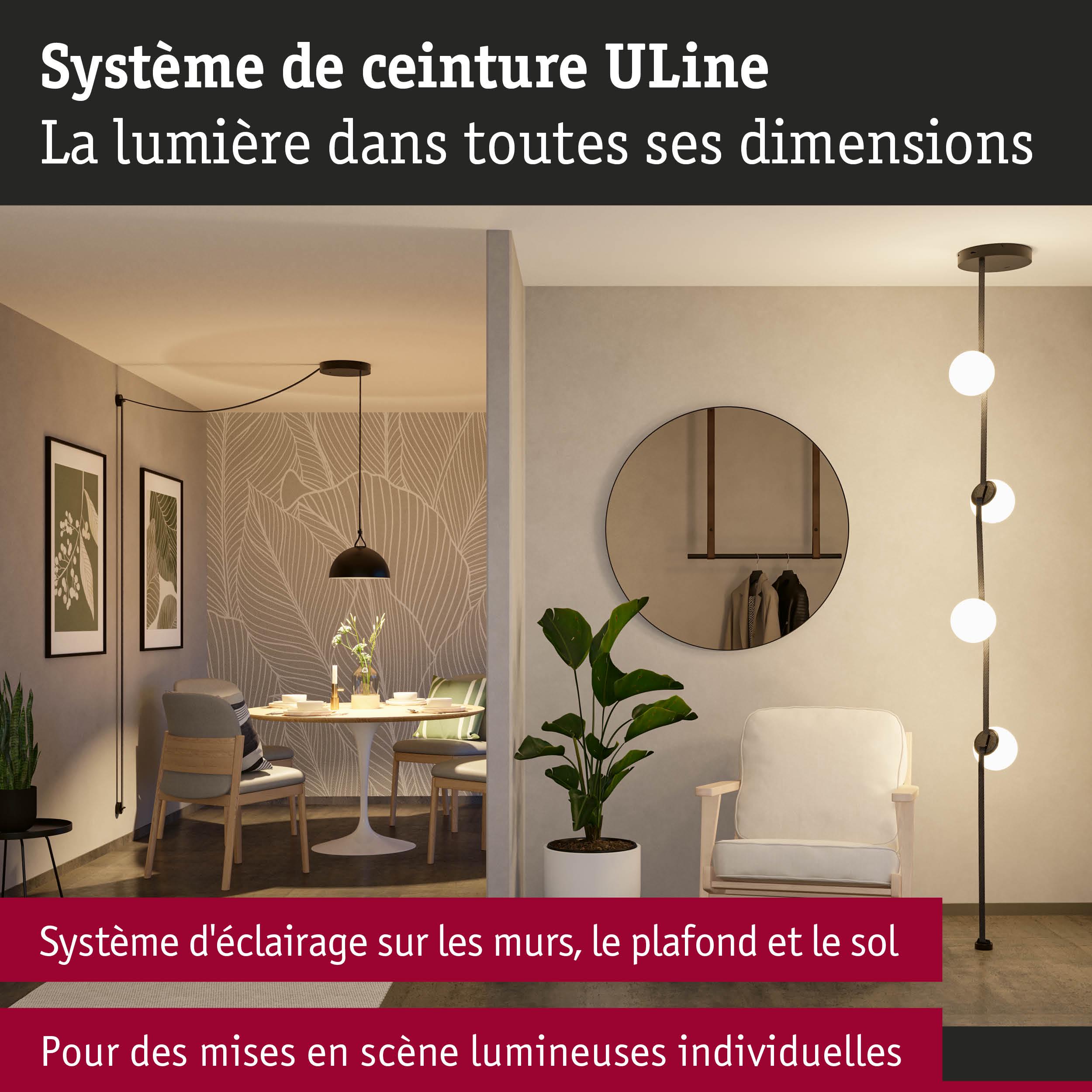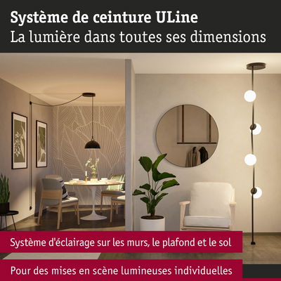 Le 150 VA kit d'installation du système ULine offre la base parfaite pour une installation d'éclairage sur mesure. Ce kit complet contient tout ce qui est nécessaire pour commencer : des pinces, le support Droit, des embouts de finition, alimentation électrique, un cache de transformateur et un transformateur puissant. La sangle, les luminaires et d'autres supports peuvent être ajoutés individuellement selon les besoins, ce qui garantit un maximum de flexibilité et de liberté créative. Le système de ceinture ULine est une solution innovante pour des expériences d'éclairage uniques dans toutes les dimensions de la pièce et permet une mise en scène ciblée de la lumière sur les murs, les plafonds et les sols.