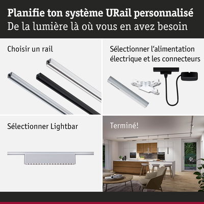 Le luminaire URail Lightbar Zelos en Chrome mat avec une température de couleur de 4000K crée une atmosphère lumineuse activante, blanc neutre, dans les pièces d'habitation, les bureaux, les couloirs ou autres. Pour cela, les lentilles alignées assurent une lumière dirigée. Composée d'aluminium de haute qualité et d'un design sobre, elle s'intègre parfaitement dans les concepts d'habitat individuels. La longueur de 32,2 cm n'est pas idéale ? Aucun problème : pour obtenir la longueur parfaite pour différentes pièces, les Lightbars peuvent être reliés entre eux sur n'importe quelle longueur. Pour ce faire, il suffit de retirer les embouts de finition et de les rallonger jusqu'à la longueur souhaitée à l'aide des connecteurs fournis. Il est également possible de les enchaîner sans problème avec les Lightbars Ceris avec diffuseur. Un autre point fort est la fonction de variation en 3 steps, qui permet de régler la luminosité en trois paramètres à l'aide d'un interrupteur d'éclairage courant. Pour un confort supplémentaire, la fonction de mémoire permet de sauver le dernier réglage d'éclairage choisi jusqu'à la prochaine mise en marche.
