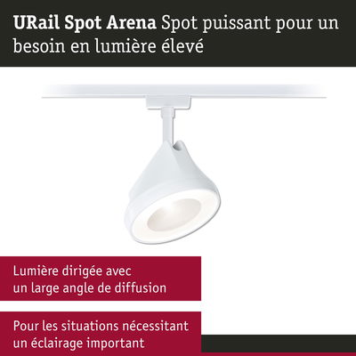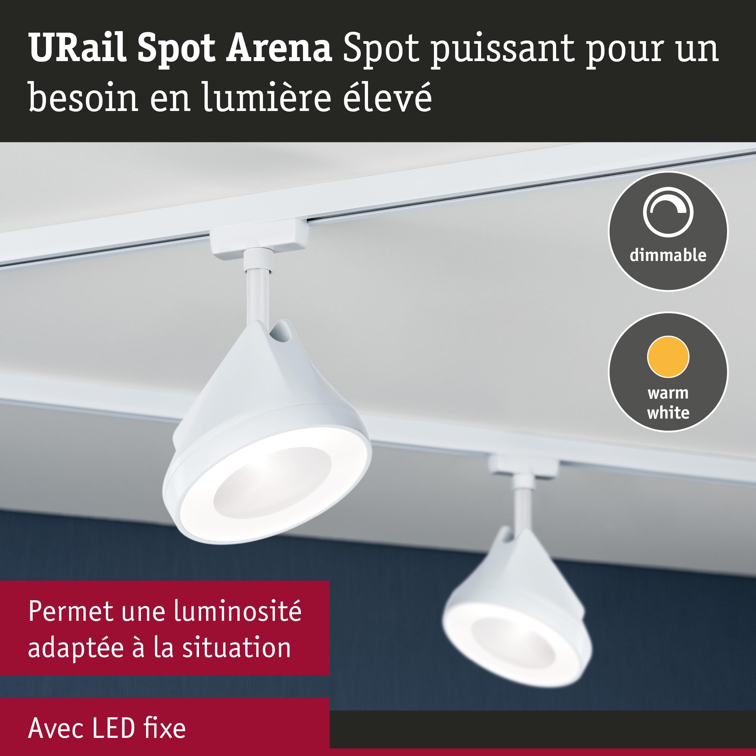 URail Spot sur rail Arena Spot individuel 850lm 15W 2700K gradable 230V Blanc signal